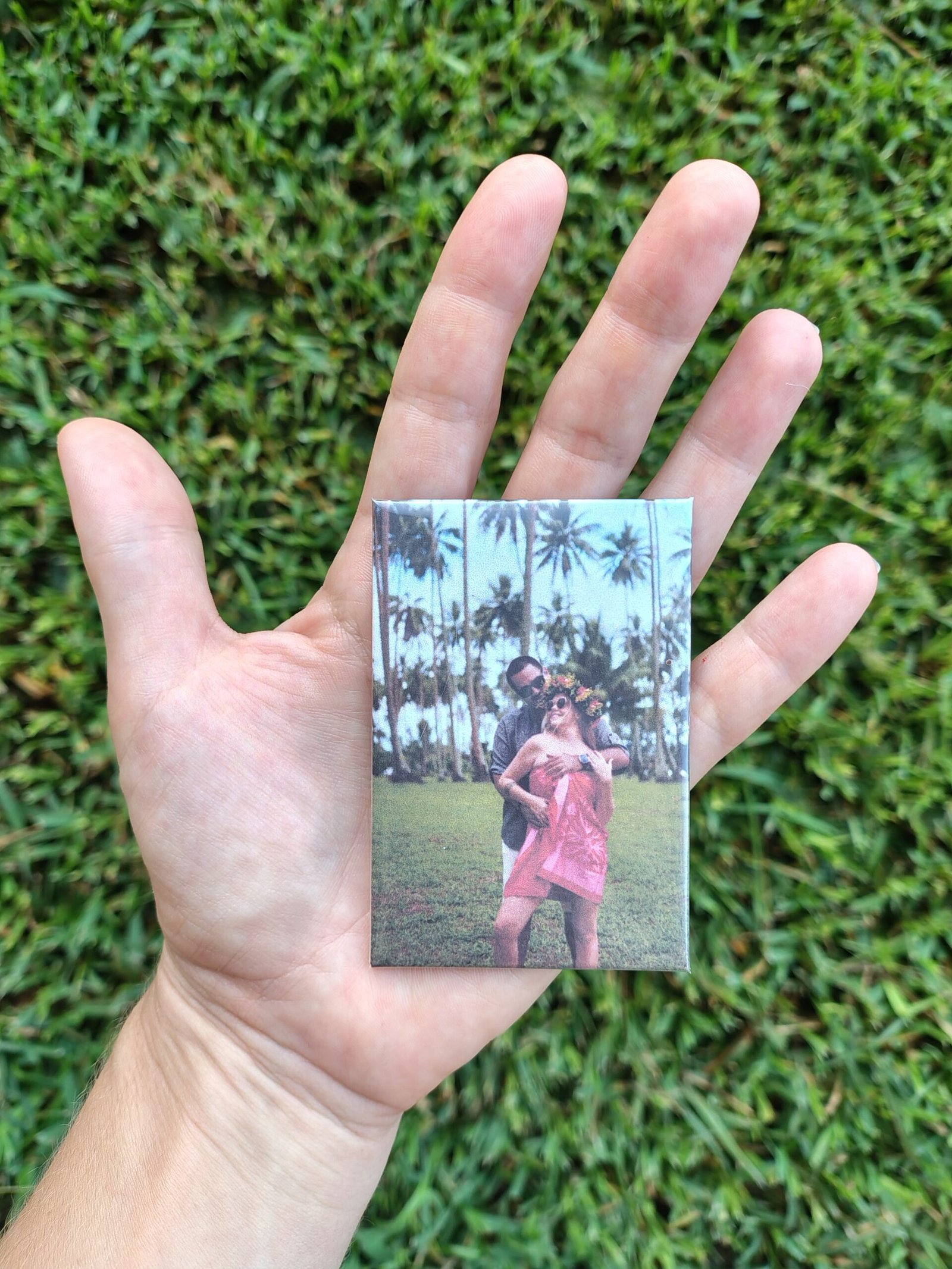 Sur un réfrigérateur, un tableau magnétique ou toute surface métallique, ce magnet devient un souvenir visible chaque jour, discret mais chargé d’émotion.